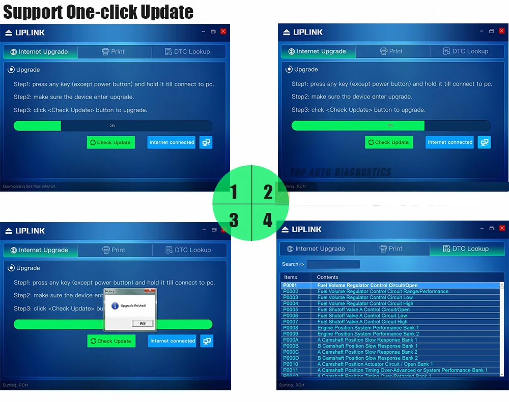 2. download and Install the "uplink" program to your PC( Windows xp- 7 only), you will find the below page, All you need is one-click, the program will search the update from our server, download and upgrade it by itself. No need any other operation, save the time and money.