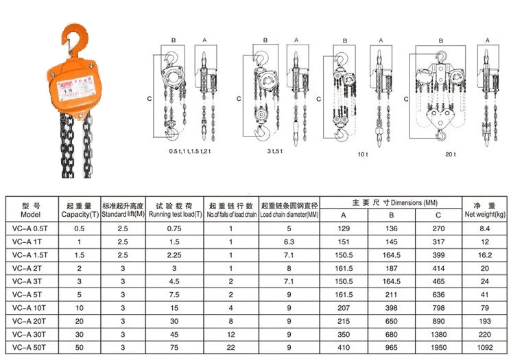 1ton 2ton 3ton 5ton 10ton 20ton 3M Vital Chain Pulley Blocks