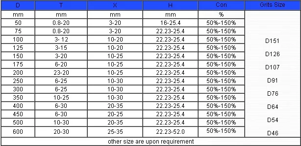 | Abrasive: | diamond/CBN; | Material: | Diamond + aluminum base; |