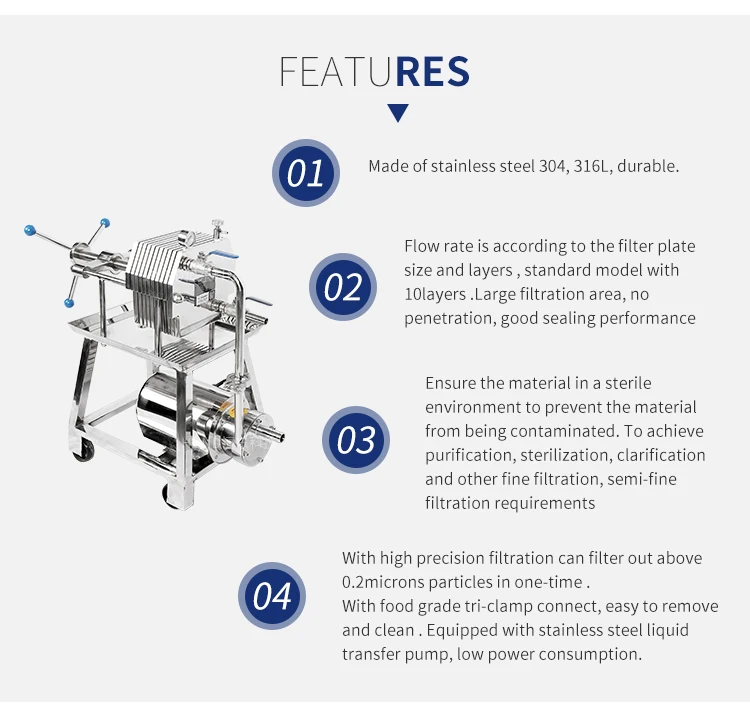 Stainless steel automatic Beer/wine/oil plate and frame filter press equipment