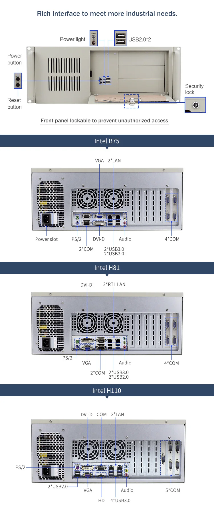 Optional interface: CPIO, LPT, 6*USB2.0 (standard version without this port) |