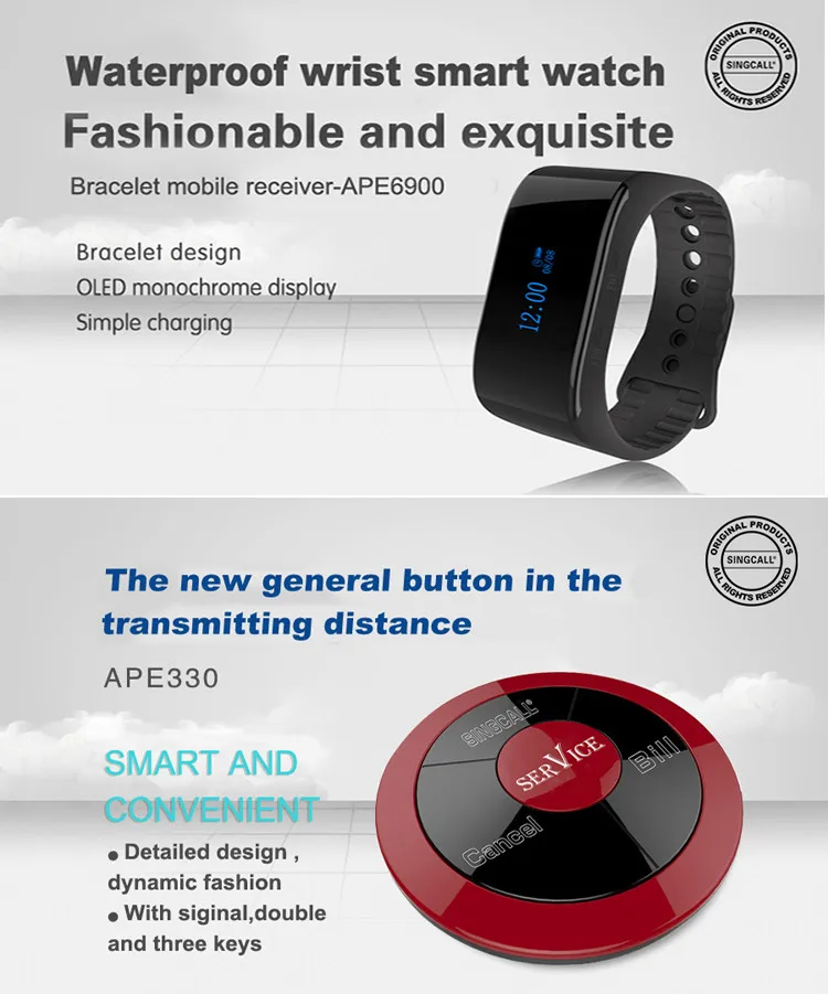 | Product name: | wireless pager waiter call service; | Model Number: | APE6900,330S-2; |