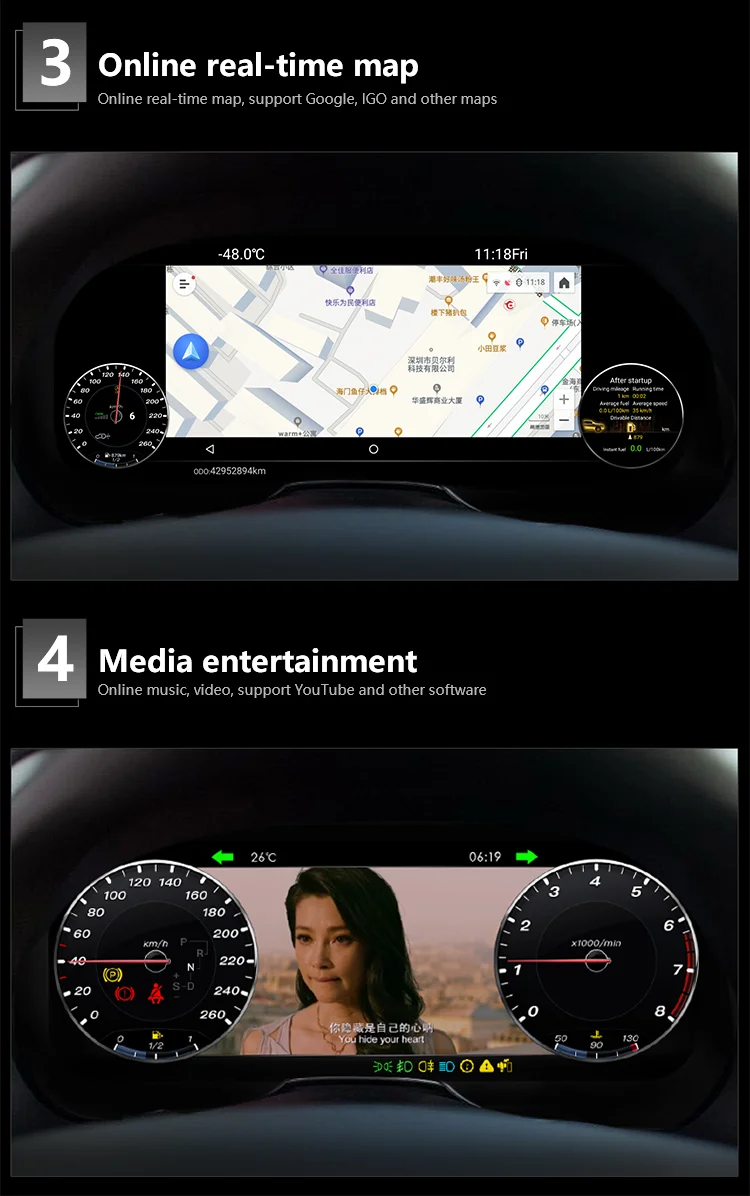 1: 12.3inch TFT LCD with IPS Screen(Resolution: 1920*720),Blue-ray antireflective touch screen.