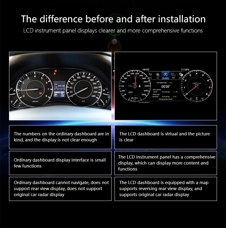 NAVIHUA touch screen Upgrades LCD dashboard New Car Tech Multifunction Digital Instrument Cluster for Jeep Wrangler