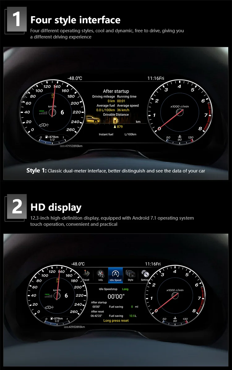 12.3 inch intelligent android meter for Nissan Patrol/Toyota land cruiser/Toyota Prado/Toyota Highlander/Toyota Vellfire/Alphard/Toyota RAV4/for Jeep Wrangler