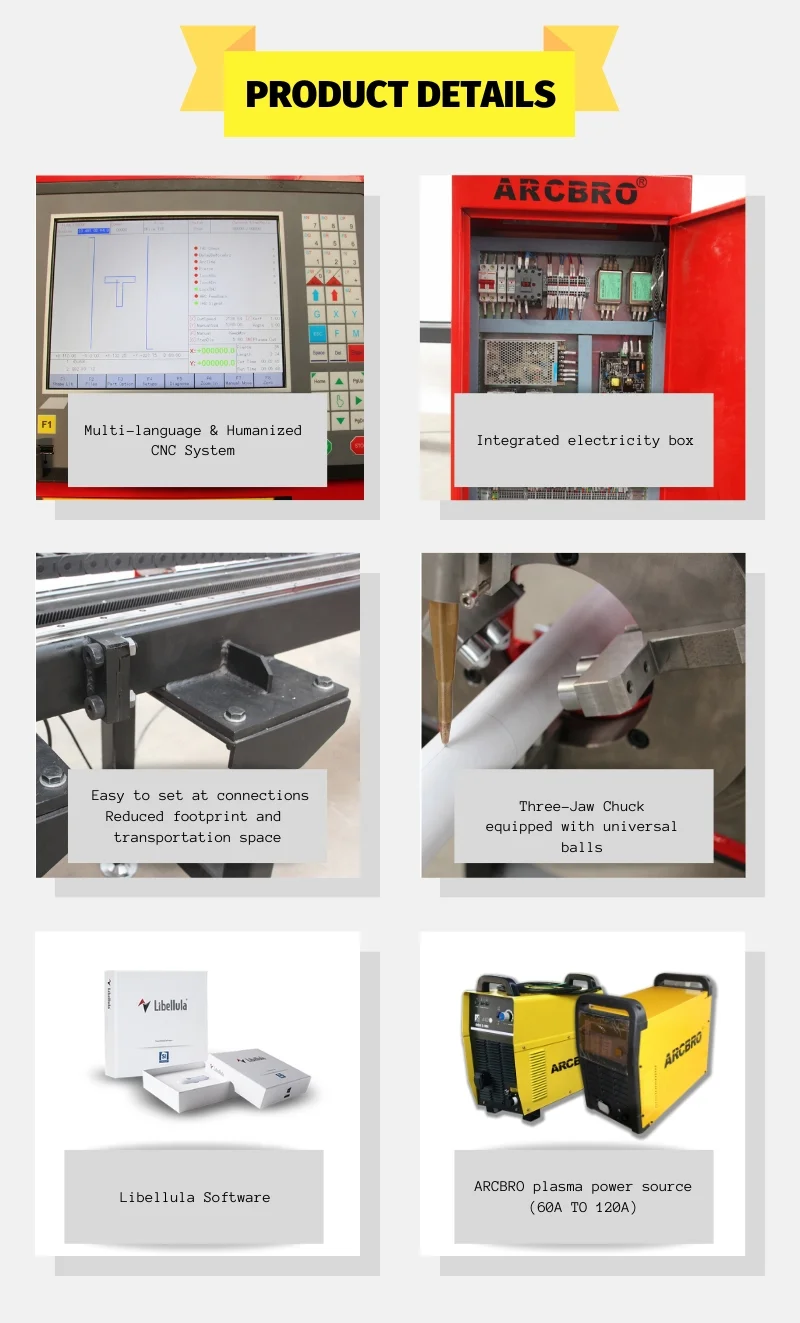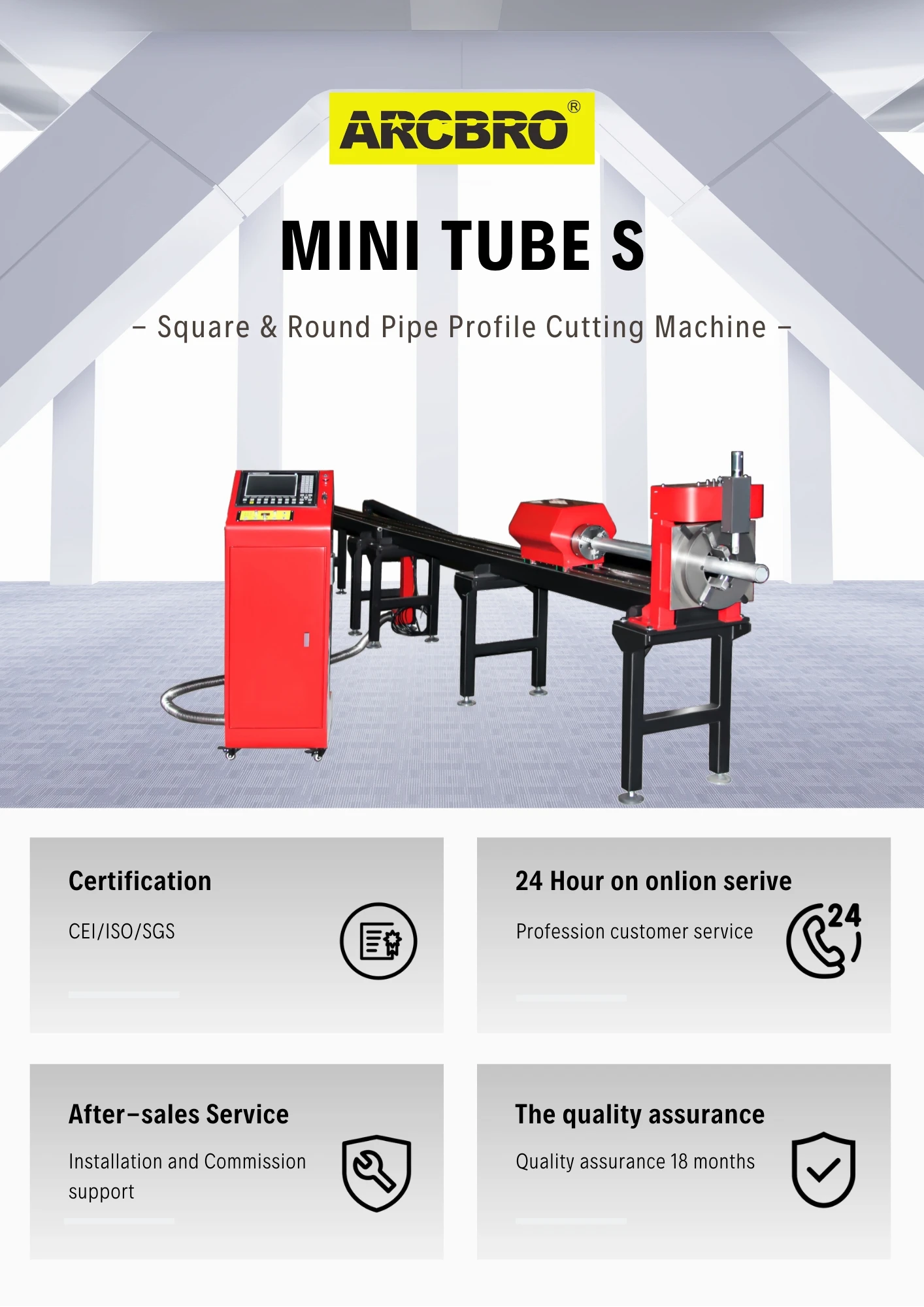 The Mini-Tube-S by ARCBRO® is a affordable CNC round and square pipe cutting solution that comes in a compact footprint. It can do pipe OD from 30 to 120 mm and pipe length from 3000 to 15.000 mm by plasma. This two-axis CNC pipe cutting machine has a footprint of only 0.6m wide and can rapidly profile aluminum, stainless steel, and mild steel pipes with ease. User powerful and friendly Italy libellula software allows quick understanding and efficient use of Mini-Tube-S machines after a short training. NC data file transfer to Mini-Tube-S from CAD/CAM software available as option.