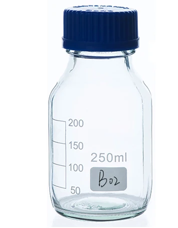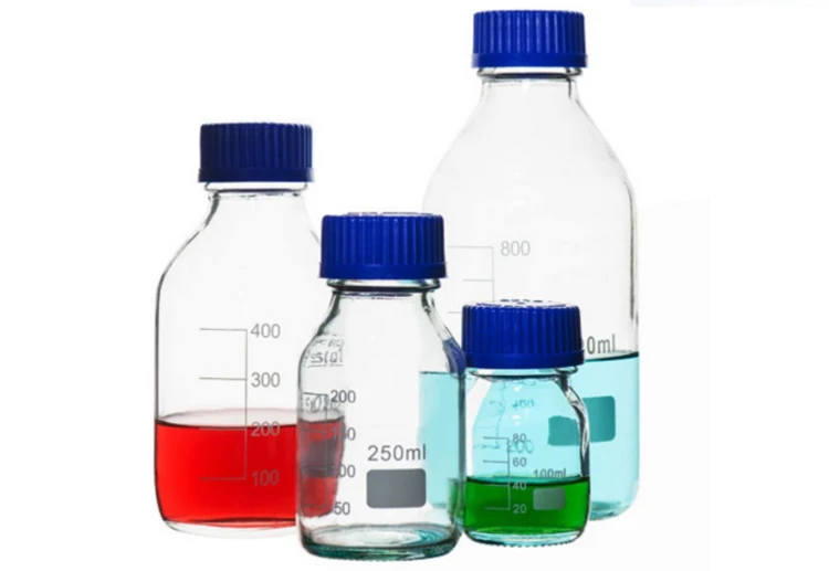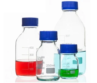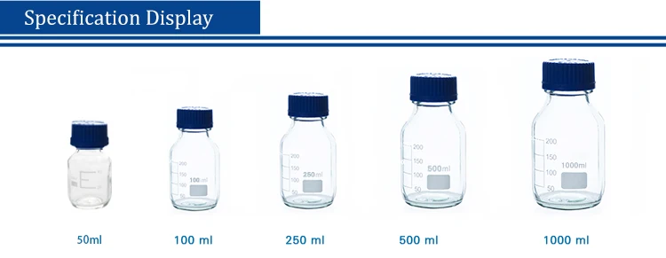 | colour: | Transparent or clean; | product name: | Blue Screw Cap Glass Reagent Bottle; |