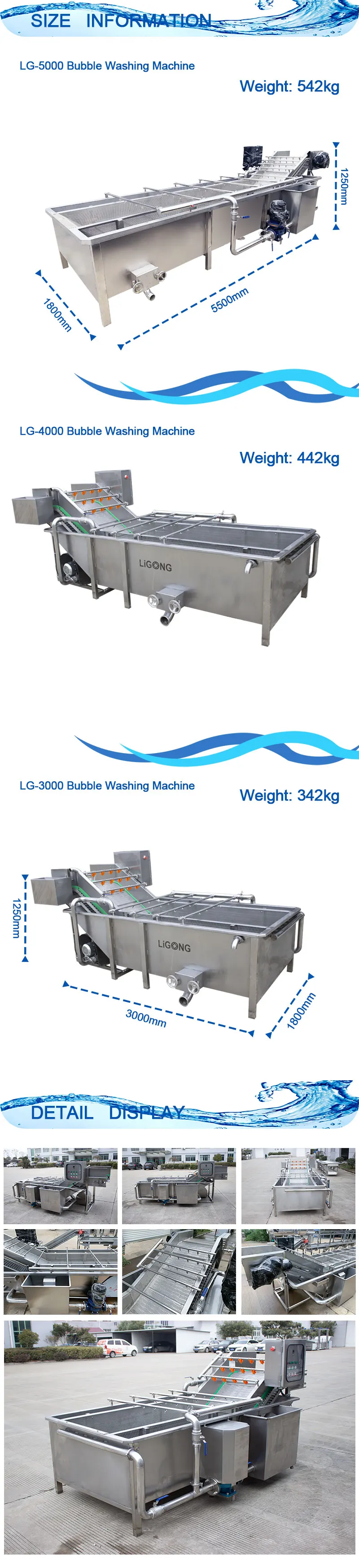 1. The machine is the ideal equipment for washing the fruits, vegetables and seafood, such as apple, strawberry, cherry, date, cabbage, mushroom, lettuce, marinated vegetables, medicinal materials, kelp, seaweed, etc.