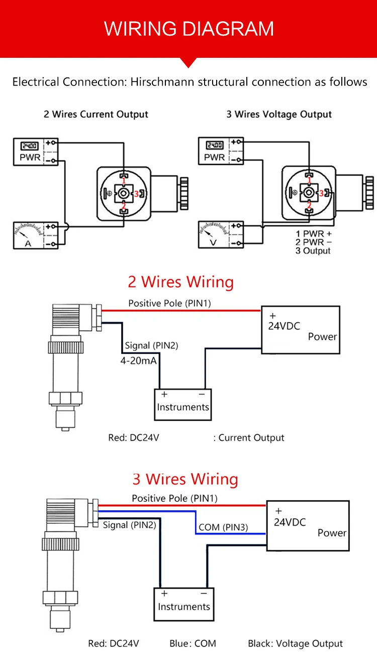 | Output signal: | 4-20mA/0-5V/0-10V/1-5V; | Pressure type: | Gauge Pressure Absolute Pressure Sealed Pressure; |