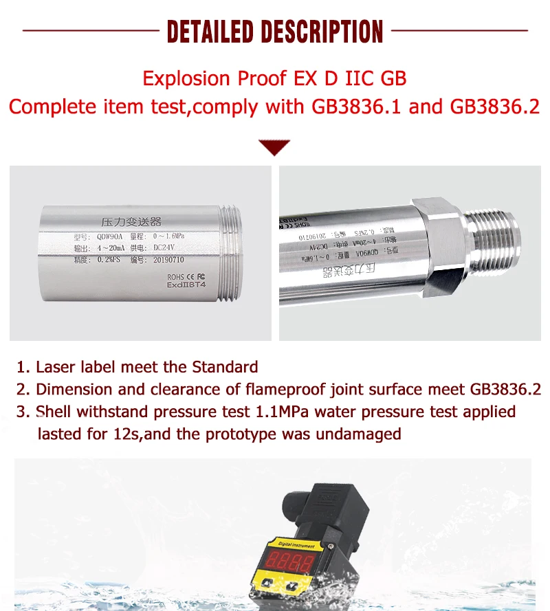 <3>. This pressure transducer has been approved with CE,FCC,ROHS,ISO certificates, and explosion-proof certificate.