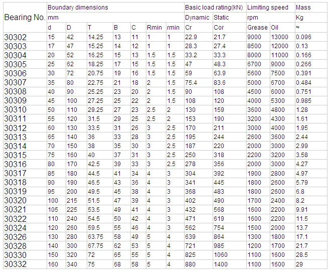 Taper roller bearing mainly carry radial, axial combined load with radial load in the main. The capacity of axial load carrying depends on the contact angle of outer ring’s raceway. The bigger the contact angle is, the greater the capacity will be.