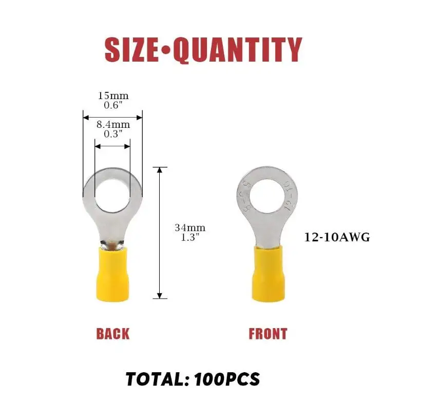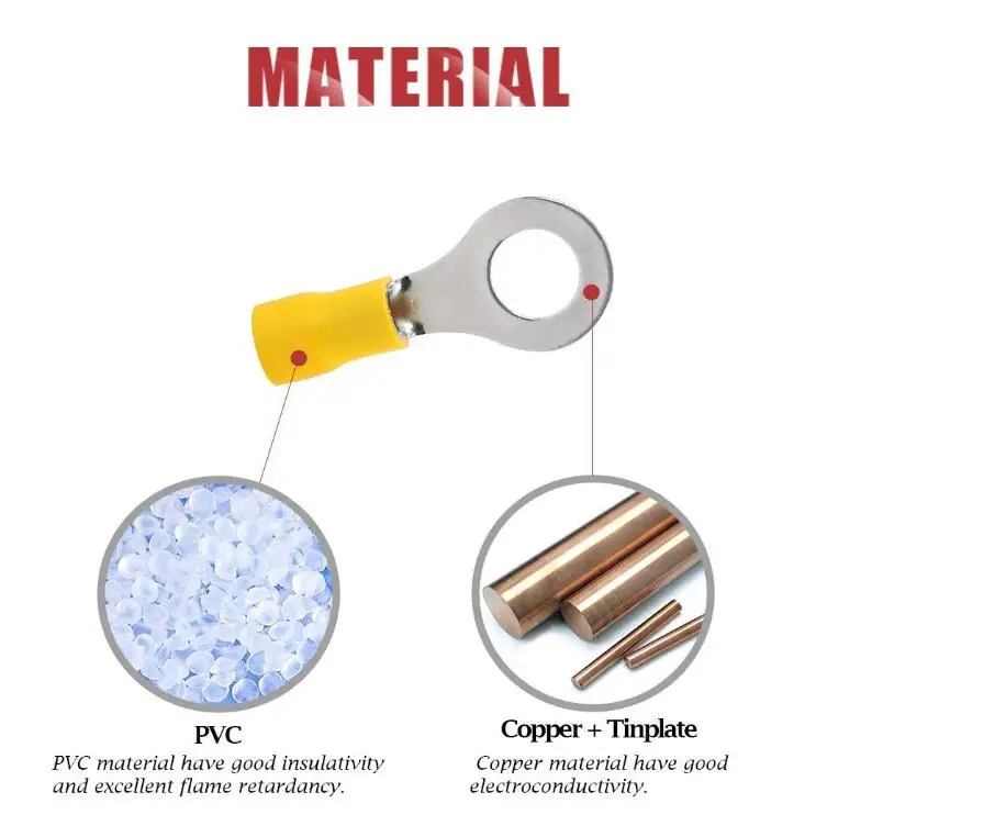 | Thickness of copper: | 1.0mm; | Color: | Insulated ring terminals; |