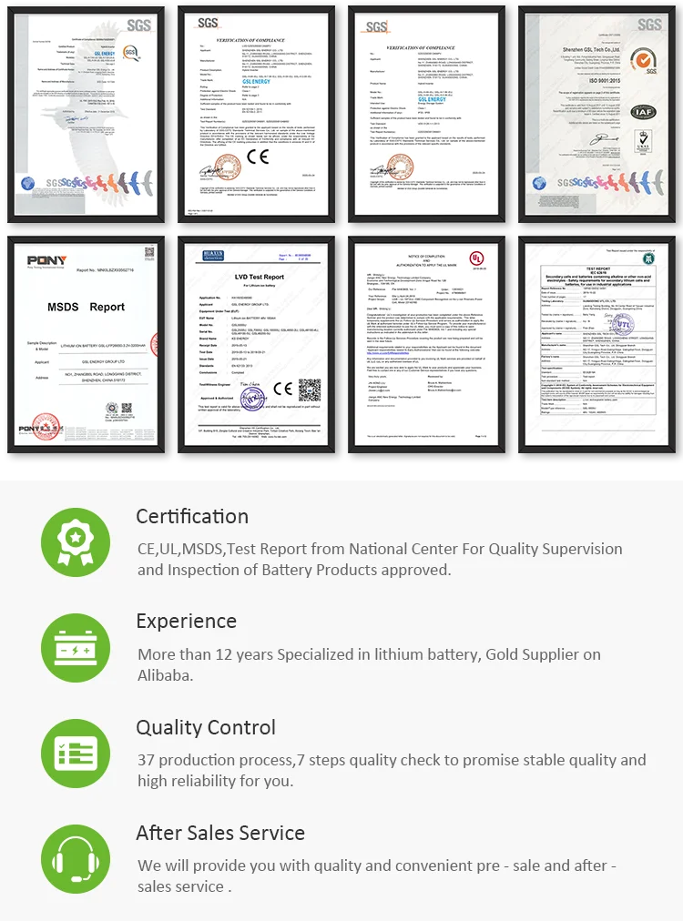 GSL ENERGY is focused on manufacturing, R&D and sales for safe Lithium battery and solutions. With the registration and certification of CE, SGS, ROHS. Striving to grow into a global leading lithium battery supplier, GSL ENERGY has been working hard on researching and developing new process technology to make our lithium battery more affordable and able to meet the rapidly growing market demands.