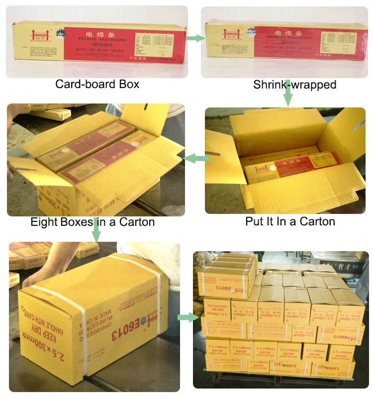 Welding Electrodes AWS E6013 is a low carbon steel electrode with high titanium-potassium type coating and suitable for both AC and DC. The electrode is able to provide excellent welding technological performance because the arc is extra stable and spatter loss is negligible, the slag has good fluid and solidified slag is very easy to remove, the manipulate is free and restrike is easy. It can give smooth and beautiful ripples.