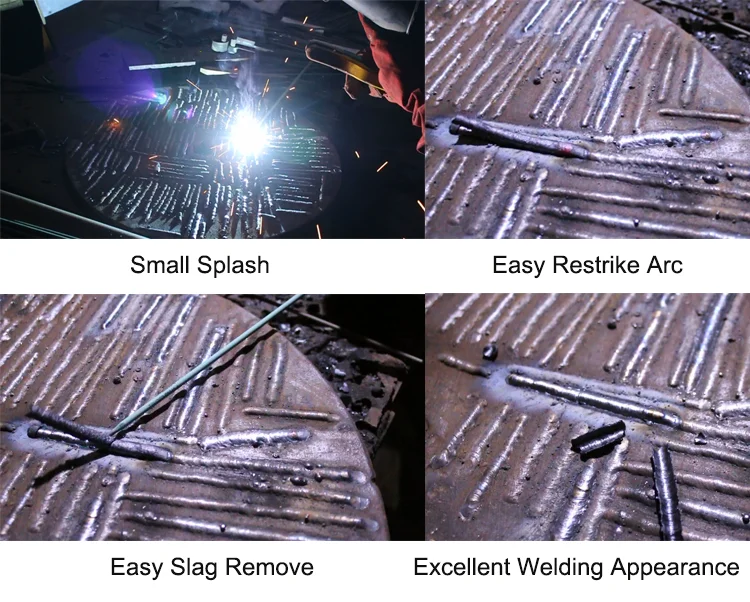 For welding low-carbon steel structures, especially suitable for welding on thin plates and cosmetic welding which requires the weld beads to be beautiful and glossy. |
