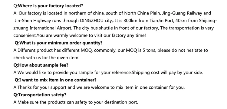 | Place of Origin: | Hebei China; | Trade Term: | FOB CIF CFR; |