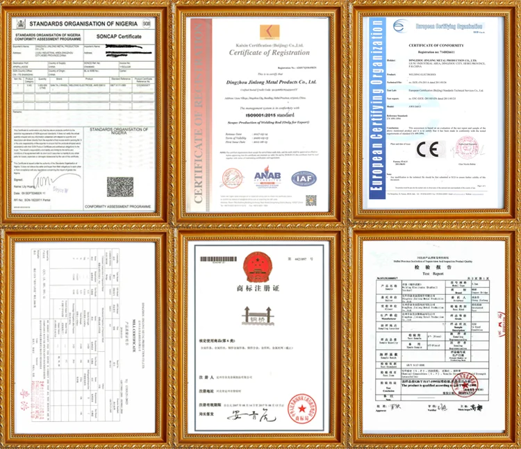 Description:High titania type electrode used for welding in all position .It was excellent weld ability and it suitable.For welding low-carbon .Steel light cgauge sheet or light structures where beautigul.bead appearanee is requested such as vehicles building and machineary. Chemical Composition of Deposited Metal(%)Chemical CompositionCMnSiSPGuarantee Value≤0.120.3~0.6≤0.35≤0.035≤0.040