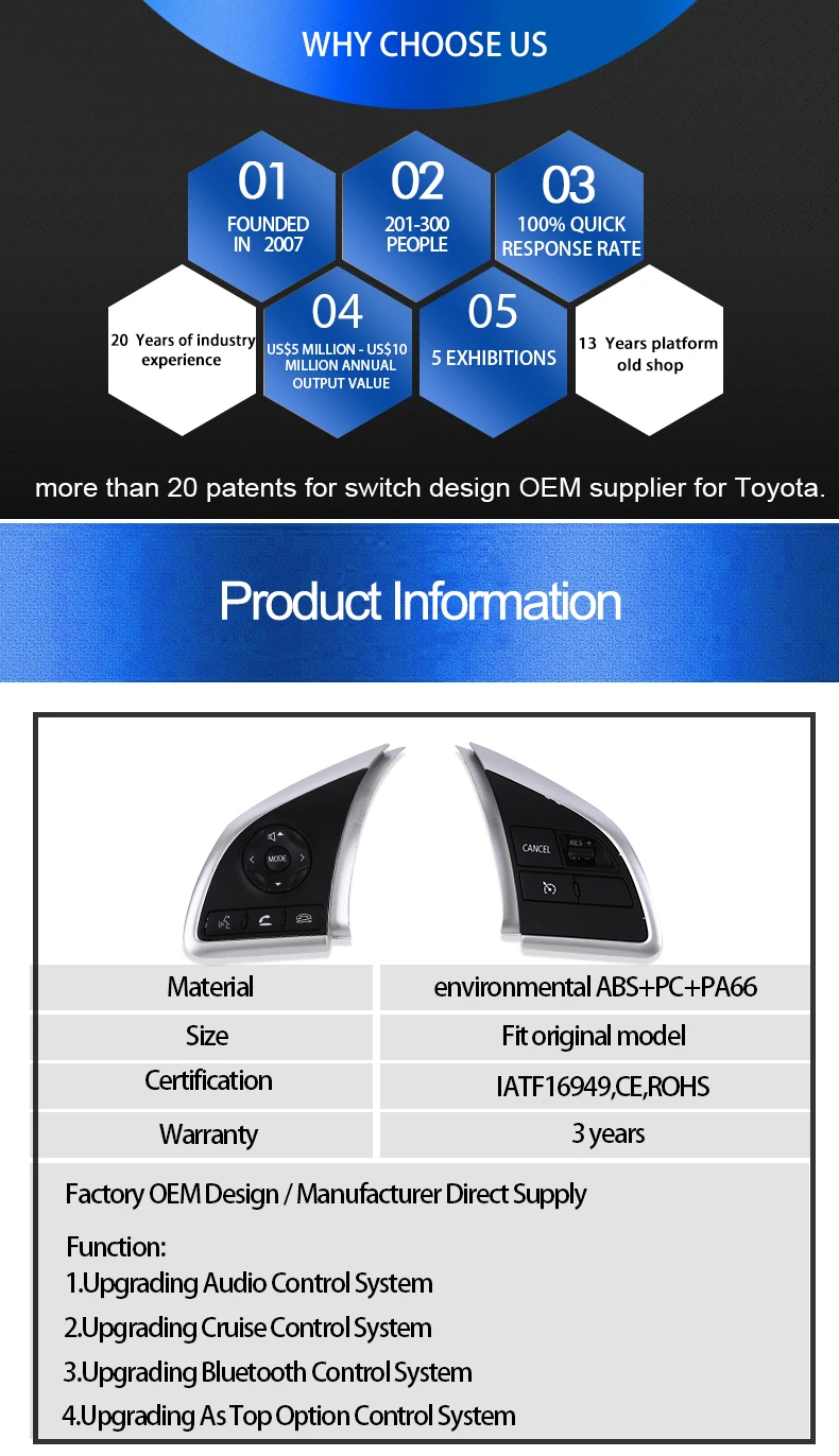 | Warranty: | 3; | Type: | steering wheel switch; |