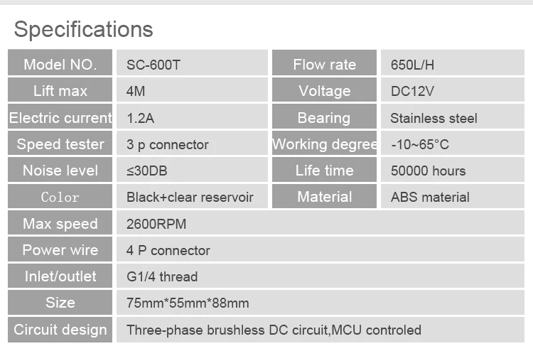 | Max lift: | 4 meter; | Flow rate: | 650L/H; |