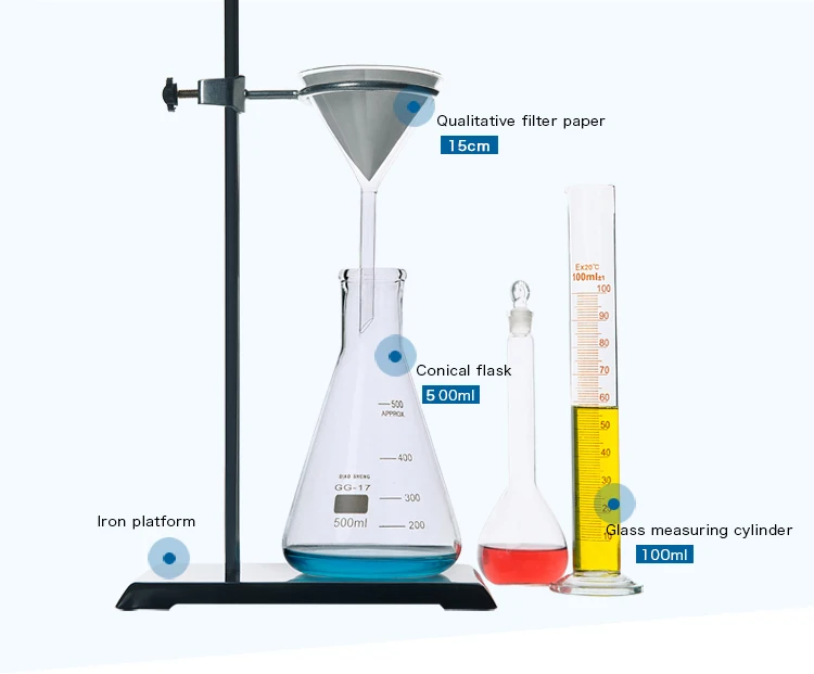 4.Place the funnel with the filter paper on the funnel holder for filtering (such as the ring on the iron stand), and place the beaker or test tube containing the filter liquid under the funnel neck, and place the tip of the funnel neck on the wall of the receiving container. Prevent liquid splashes.