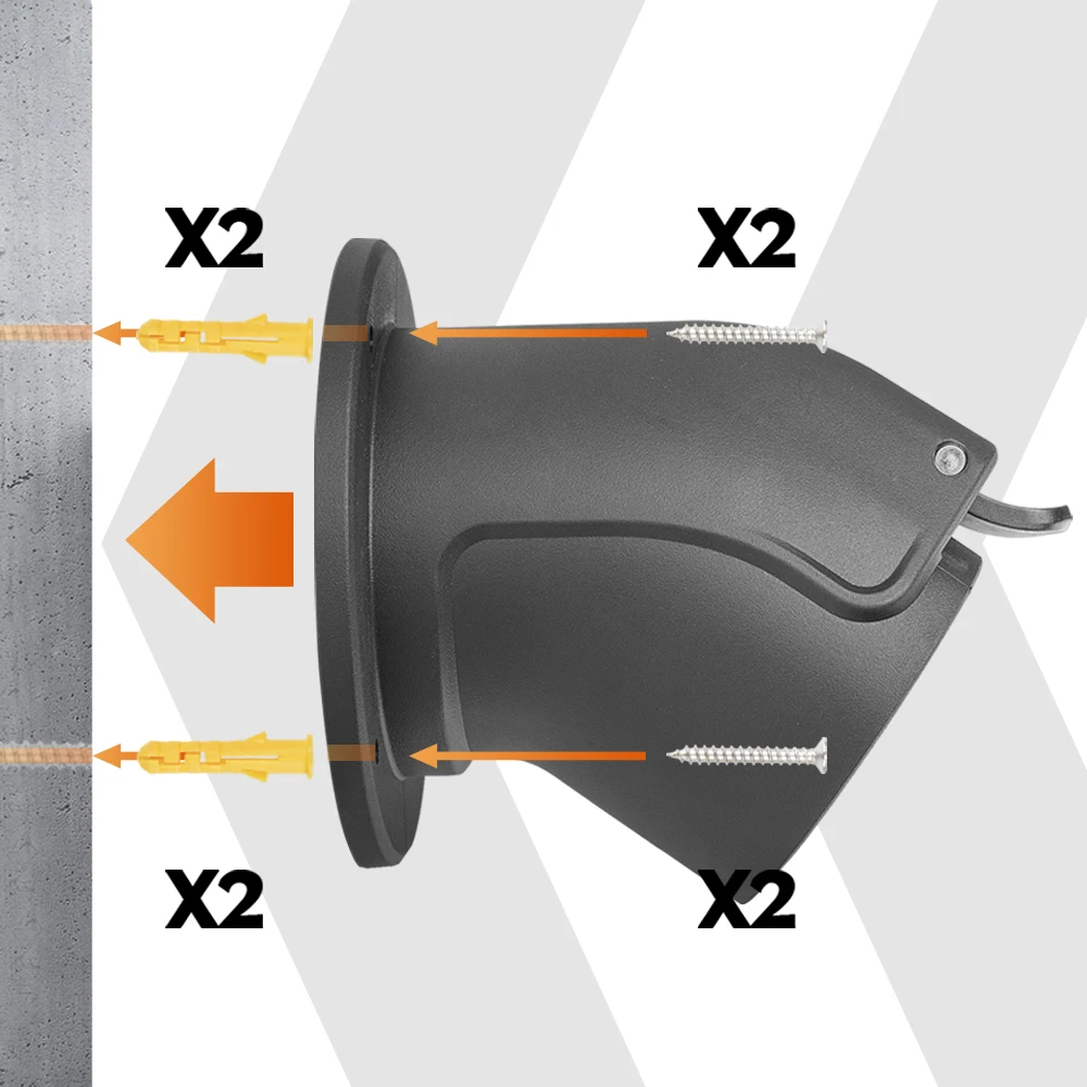 This holder can help you to hang up your Type2 female(EV end) plug near the home charging station / charger when not in use.