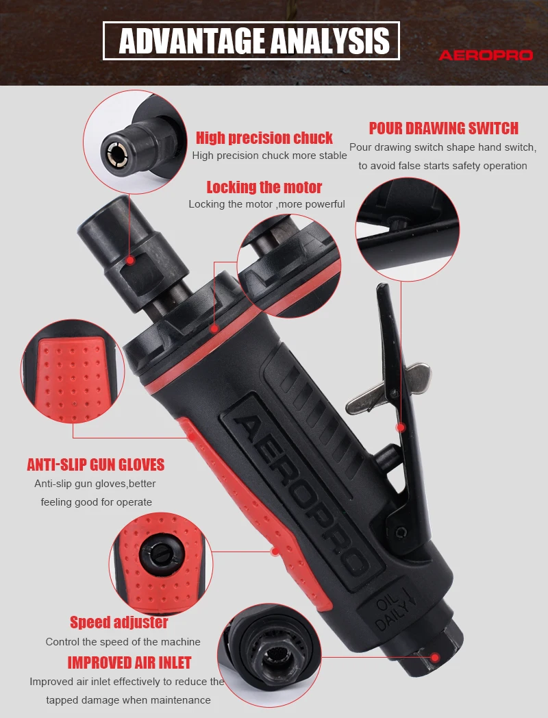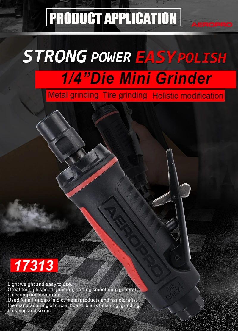| Chuck Size: | 1/4" and 1/8"; | Packaging Detail: | AP17313 1/4 inch Mini Micro Air Die Grinder; |