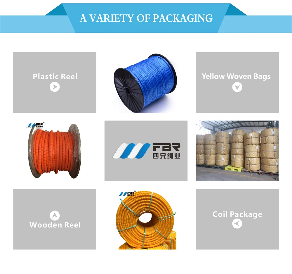 Zhejiang Four Brothers Rope CO.,Ltd(FBR) is located in Taizhou .FBR has fully turned from the hand-made natural fiber rope into the machinery manufacturning fiber rope from 1940's to 1980's.With about over half century's development,FBR has become one of the largest and most professional chemical fiber rope manufacturers in the world now,which in theintegartion of research and development,manufacturing,sale and after-sale service.FBR is awarded with high and new technology enterprise of Taizhou .The company covers 60,000 square meters with the intelligent office buildings and over 300 empolyees.With annual production capacity of over 15,000 tons,FBR owns the completed research and testing facilities including 2500 tons high-strength testing machine ,etc.