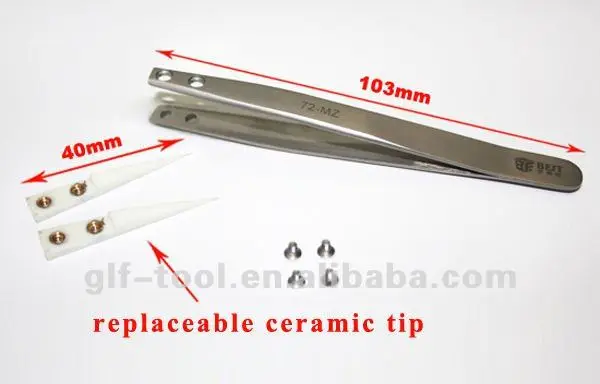 | Product name: | Ceramic Tip Tweezers; | Finish: | Non-magnetic,Corrosion Resistant,Heat Resistant; |
