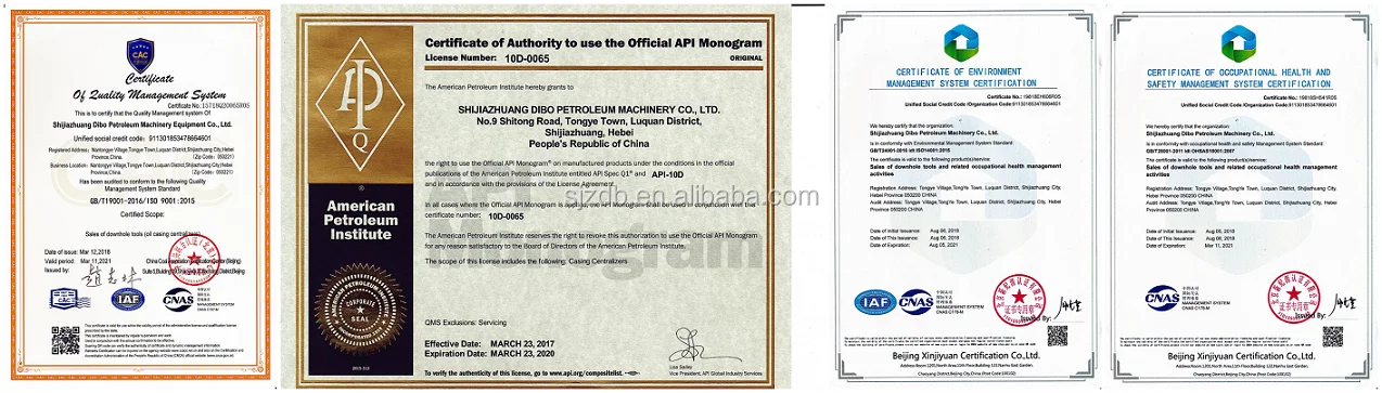 We have passed API 10D, ISO9001 International Quality System,GB/T24001 Environment Management System & GB/T28001 Occupational Healthy Safety Management