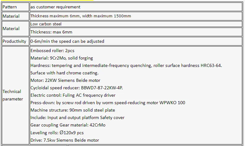| Embossing type: | as customer requirement; | Material thickness: | max 6mm; |