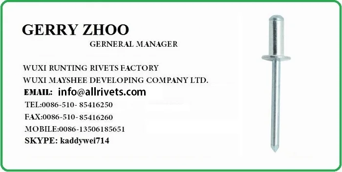 | Port: | FOB SHANGHAI; | Product: | HIGH QUALITY ALUMINUM BLIND RIVET; |