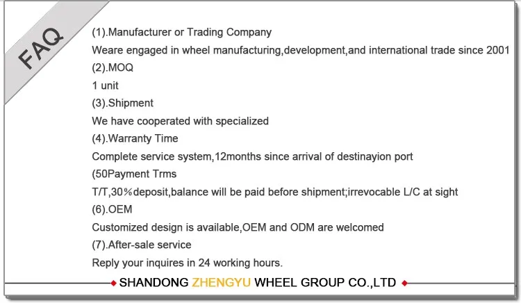 Zhengyu Group was established in June 2004, located in the Yellow River delta - Guangrao county, Dongying city, covers an area of 470000 square meters, is an enterprise in the wheel manufacturing and integrating independent research and development, design, manufacture, sales and international trade. The group has several subordinate companies including two large manufacturing enterprises of Shandong Zhengyu Wheel Group Co., Ltd, Shandong Zhengyu Aluminum Industry Co., Ltd, and Shandong tyrewheel import&export trading Co., Ltd, Shandong donglv magnesium aluminum technology Co., Ltd, Zhengyu Energy Co., Ltd.