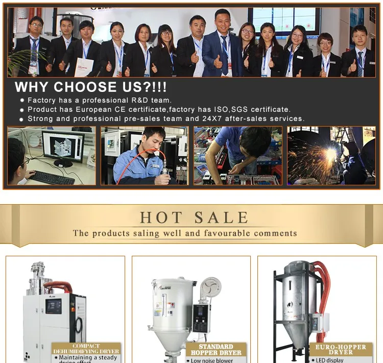 7.High-temperature type for 50-1500kg available, with double-walled hopper tank, stainless steel heating tube and high-temperature blower