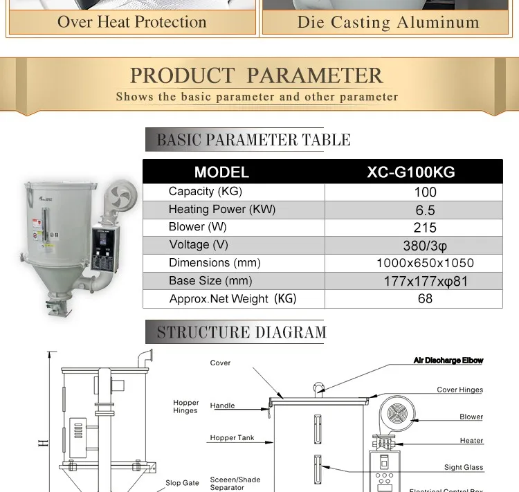 XC-G100KG | 100 | 6.5 | 246 | 380*3p | 101*70*141 | 177*177*p81 | 68 |