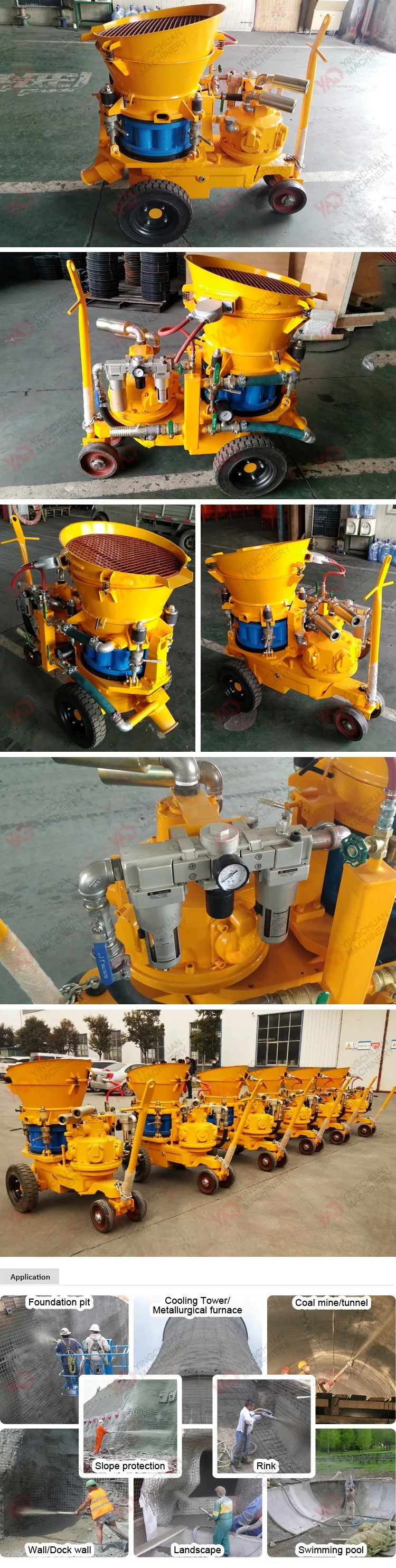 Shotcrete machine are mainly used for railway and highway, subterranean basement walls, Seismic reinforcing/retrofitting of buildings, channels, shear Walls, retaining Walls, bridge retrofits, architectural concrete, mining, tunnel, culvert, subway, hydropower engineering(such as tunnels,dams and pools) and underground excavation engineering etc.