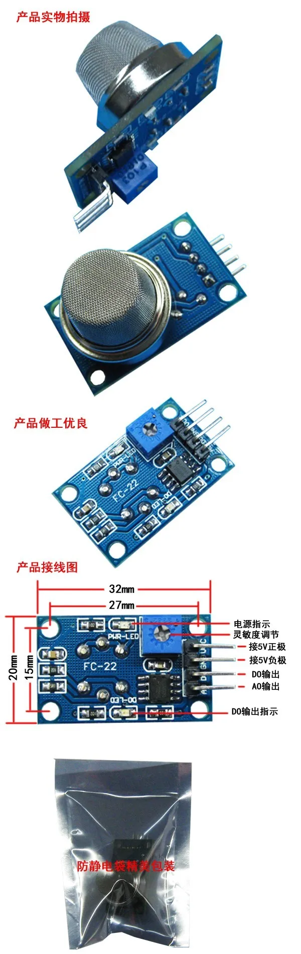 Special note: When the sensor is powered, need to warm about 20S, measured data becomes stable, heat sensor is a normal phenomenon, because the internal heating wire, hot if not normal.