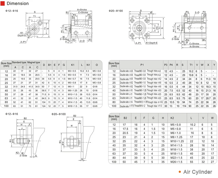 | Bore Size(mm) | 12 | 16 | 20 | 25 | 32 | 40 | 50 | 63 | 80 | 100 |