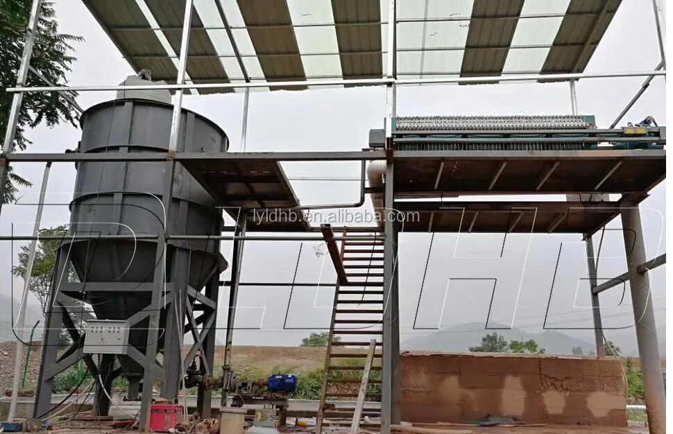 LDHB high-efficiency paste thickener is based on the traditional vertical flow sedimentation equipment. The structure of the internal feed cylinder is improved, and the efficiency of sedimentation is greatly improved. The plane of the tank body is circular and suspended. It settles into the conical sludge tank at the bottom of the tank under the action of gravity, and the clarified water is discharged from the overflow weir around the upper end of the tank. The overflow port is provided with a scum filter device and a baffle to ensure the effluent water quality, the underflow concentration is up to 70%, and the treatment capacity is 3-8 times higher than that of the conventional concentrator.