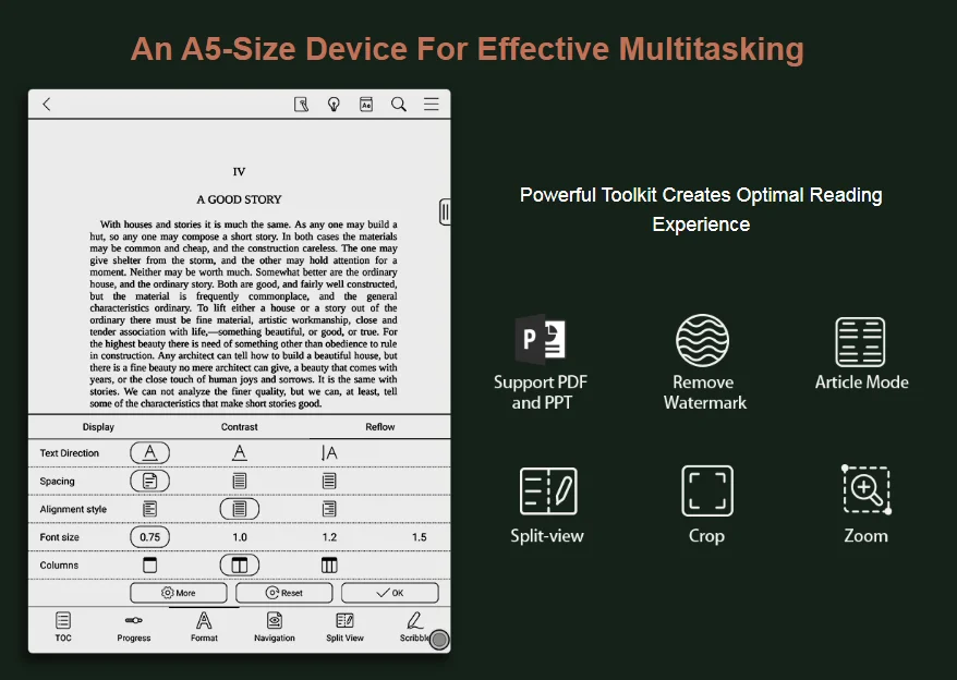 | Support Type: | Txt,Html,PPT,FB2,CHM,DjVu,MOBI,EPUB,DOCX,DOC,PDF; | Network: | WiFi (802.11b/g/n/ac) 2.4G + 5G; |