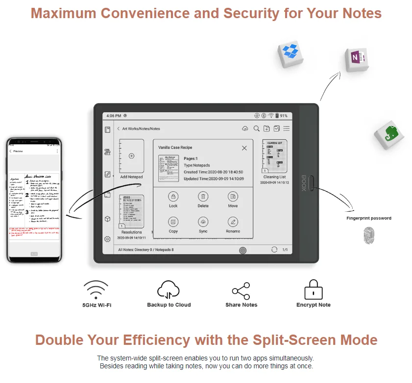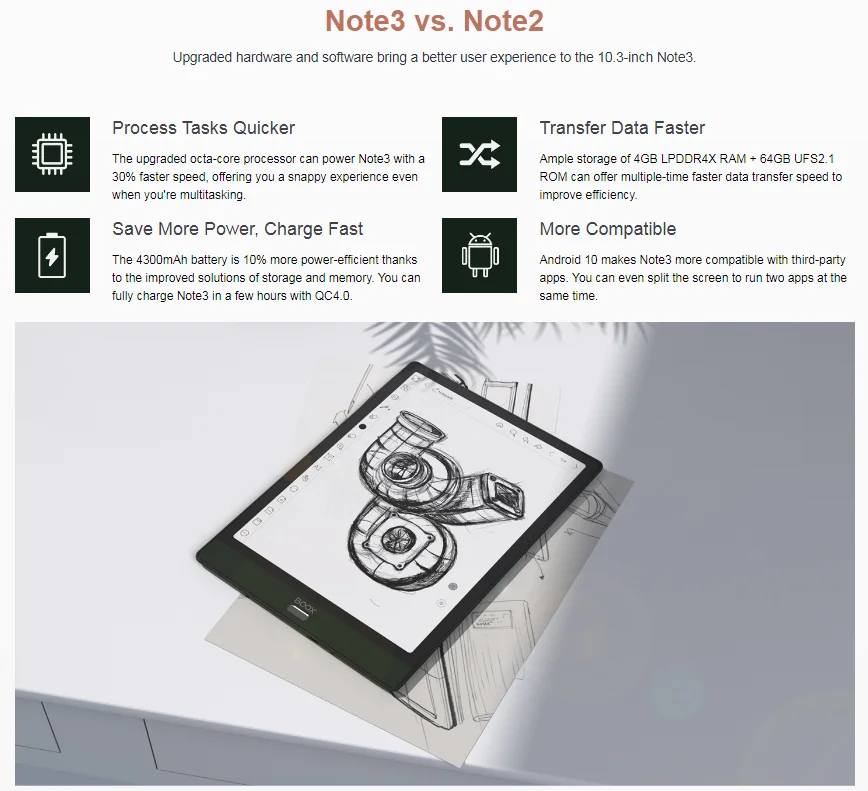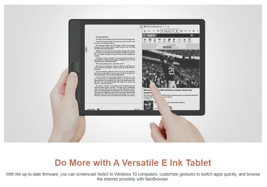 Android eink tablet 10.3 inch BOOX Note3, support Google Play store, Split Screen View function, running two Apps at same time