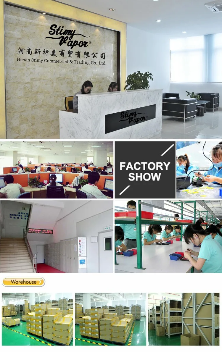 Stimy-Vapor company is special working for Electronic Cigarette and the related accessories. We have several years OEM &ODM experience on electronic cigarette research & development and have our own manufacturing plant with over 2,000 square meter production area and about 100 experienced employees. Meanwhile, We have full-automatic sealing and assembly line, Semi-automatic atom, Supersonic welding machine and Automatic packaging machine and so on .