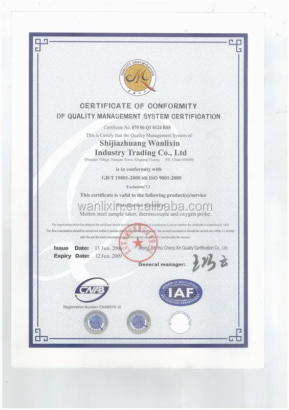 Founded in May 2002, Shijiazhuang Wanlixin Industrial and Trade Co., Ltd headquartered in Shijiazhuang, the capital of Hebei province,has developted into the leading manufacturer of moltenmetal sensors.