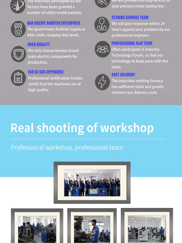 | Metal capacity: | 300g gold, platinum or 150g silver; | Video outgoing-inspection: | Provided; |