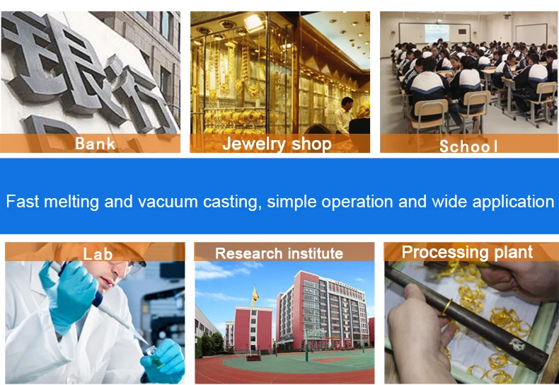 1. The machine uses a quartz crucible, which can cast most of every metal at a maximum temperature of 2600 degrees, including gold, silver, platinum, palladium, etc.