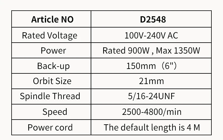 | Article NO: | D2548; | Speed: | 2500-4800 RPM; |