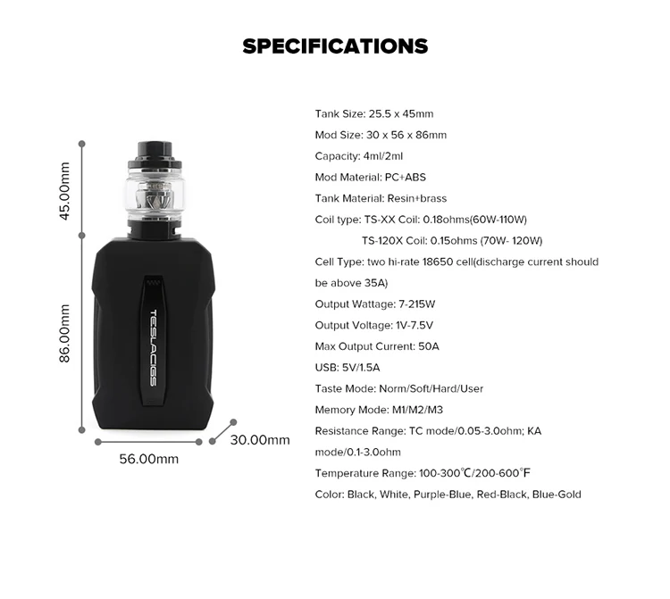 | Brand Name: | Teslacigs; | Power(W): | 7-215W; |
