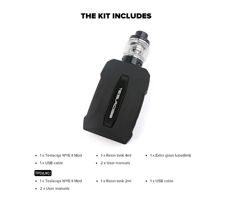 New Products Teslacigs WYE II Kit Consisting with Teslacigs WYE 2 Mod and Teslacigs Resin Sub Ohm