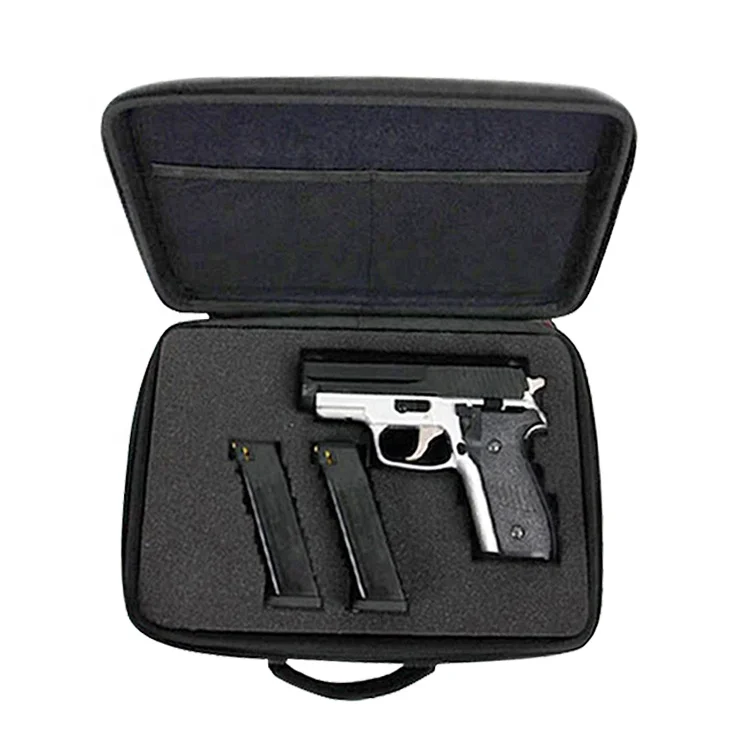 Custom Waterproof Pistol Tactical Hand Gun EVA Protective Foam Mould Tray Hard Gun Case with Fabric Shoulder Strap Black