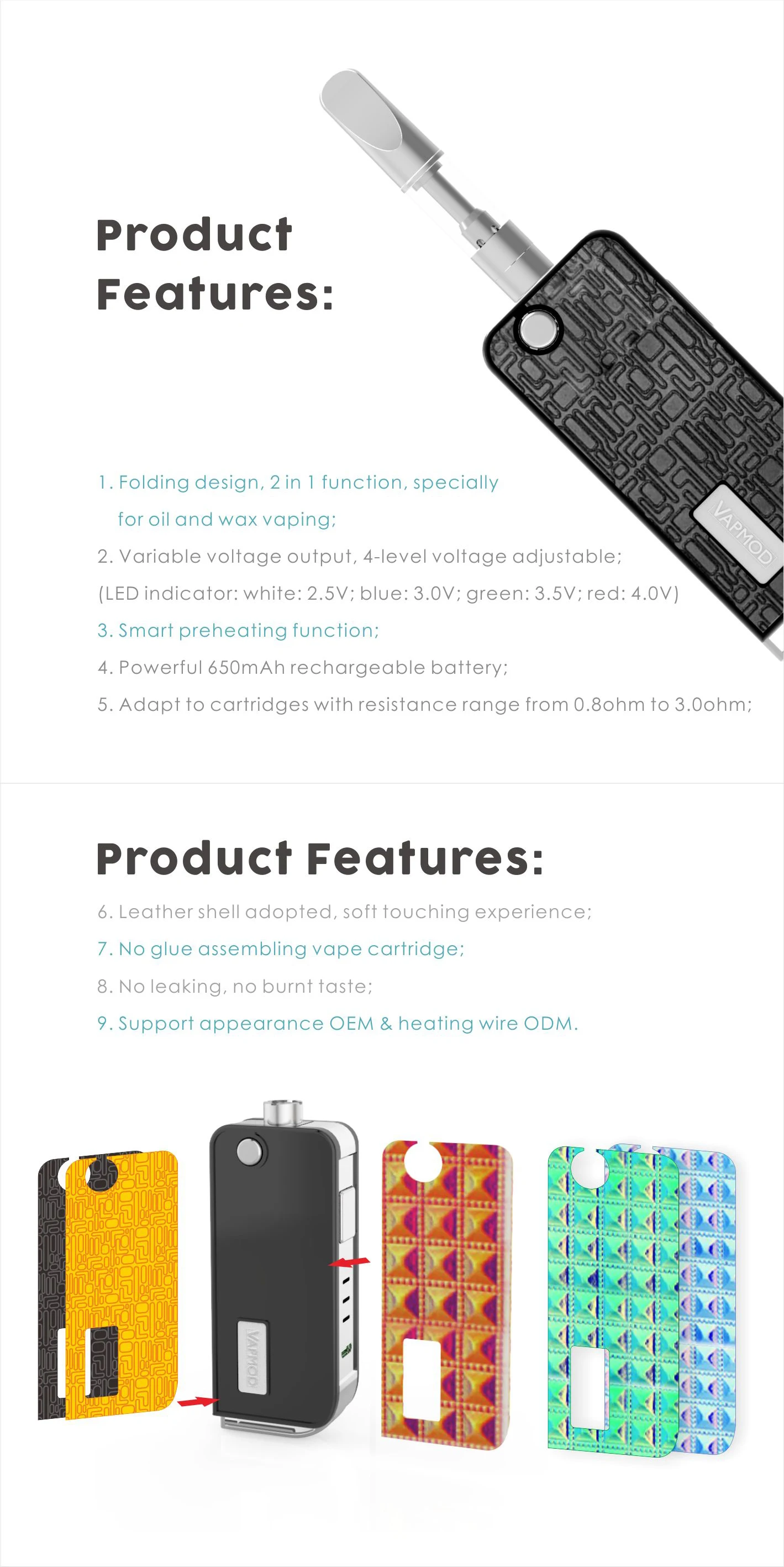 | Built-in Or External Battery: | Internal Battery; | Brand Name: | Vapmod; |