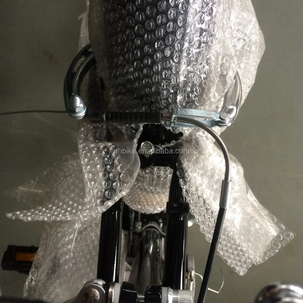 A:The normal package is SKD 85%.One Bike One Carton.Front wheel and handlebar fixed on the frame, reflector, pedals and some small bicycle parts are in a small box.Also can by your requirement.